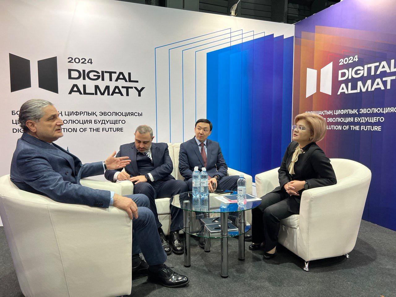 Almaty, 2 February 2024. Tigran Sargsyan, Vice Chairman of the Eurasian Development Bank’s (EDB) Management Board, met with Nuria Kutnaeva, the Kyrgyz Republic’s Minister of Digital Development, during the Digital Almaty 2024 Forum.